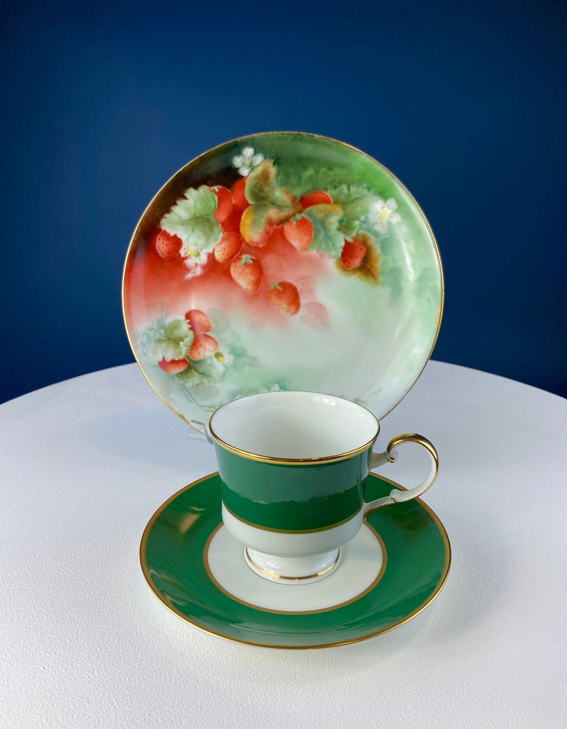 Antique Dessert Plate with Hand-Painted Strawberries. Hutschenreuther Porcelain, 1914. Modern Farmhouse, French Country. Collectible.